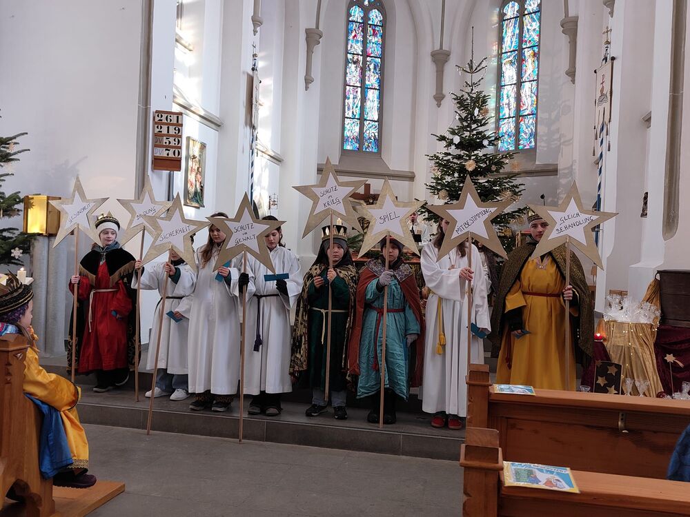 Musikalisch wurde der Gottesdienst von bekannten Liedern getragen, die viele Kinder aktiv mitsangen und mit Bewegungen begleiteten. Mit dem gemeinsamen Sternsingerspruch machten die Kinder und Jugendlichen ihre Rolle als Botschafterinnen und Botschafter noch einmal deutlich sichtbar.