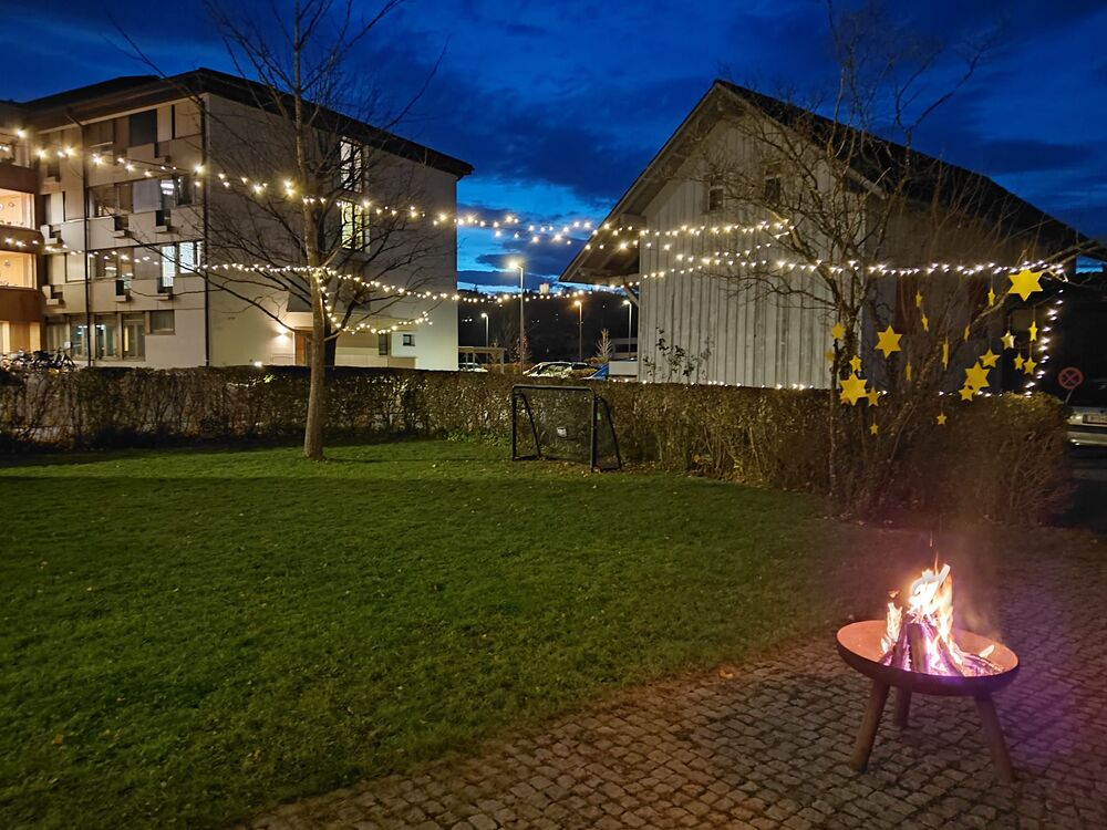 Vor dem Pfarrhaus klang der Abend gemütlich aus: Bei Tee, Kinderpunsch und Glühwein, rund um die Feuerschale, unter funkelnden Lichterketten und begleitet von stimmungsvoller Musik der GaJuKa entstand eine warme, einladende Atmosphäre.