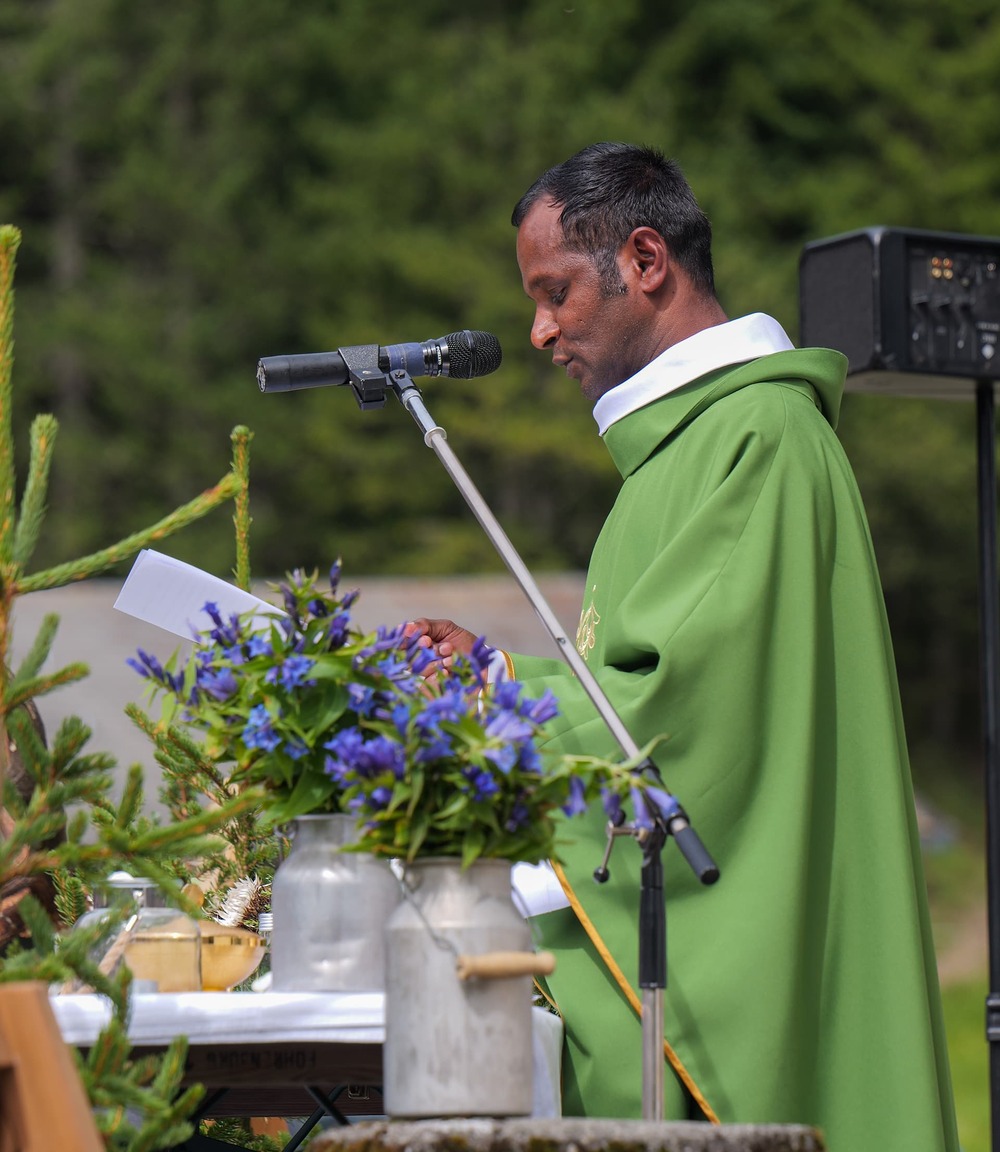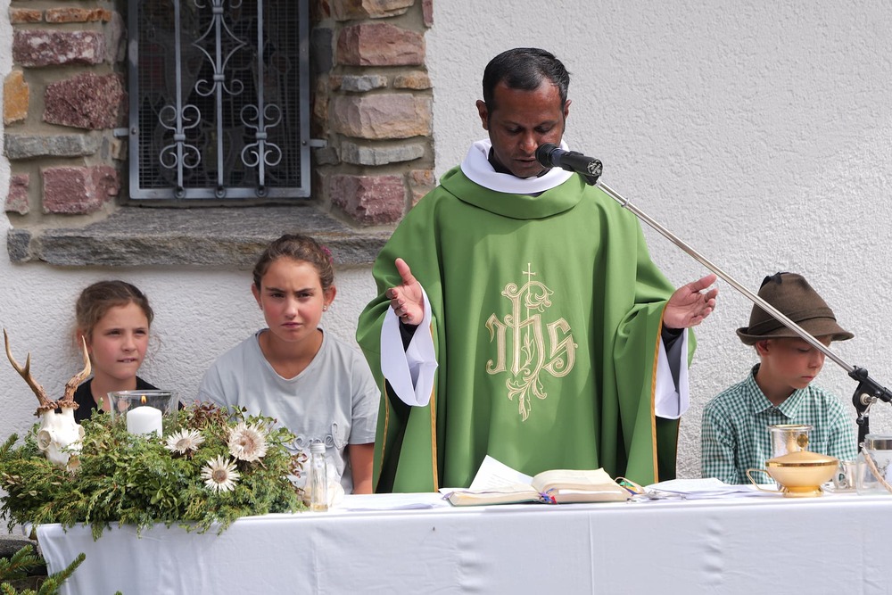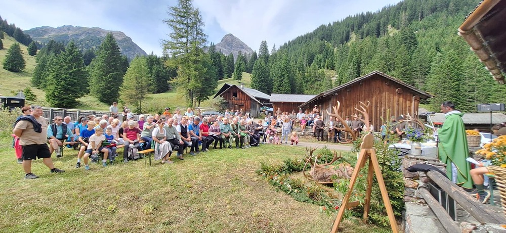 Zahlreiche Gläubige fanden sich bei strahlendem Spätsommerwetter in der besonderen Bergkulisse des Rellstals ein.