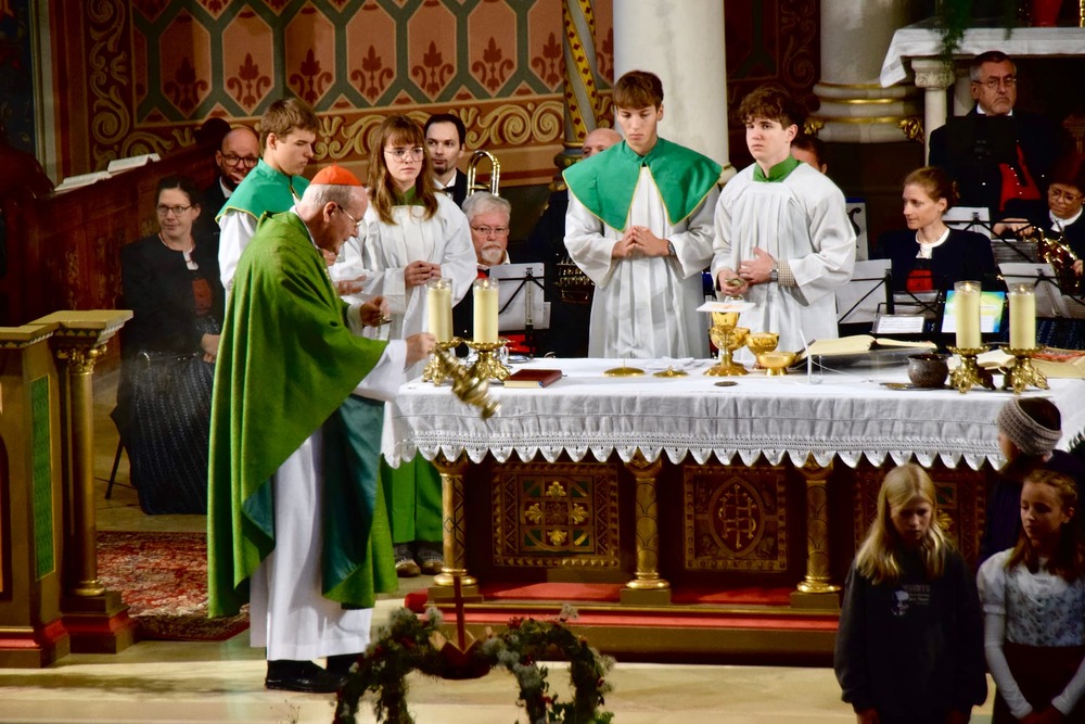 Auch Kardinal Christoph Schönborn fühlte sich in seiner Heimatgemeinde auf dem Kirchplatz unter den vielen Gottesdienstbesuchern sichtlich wohl.