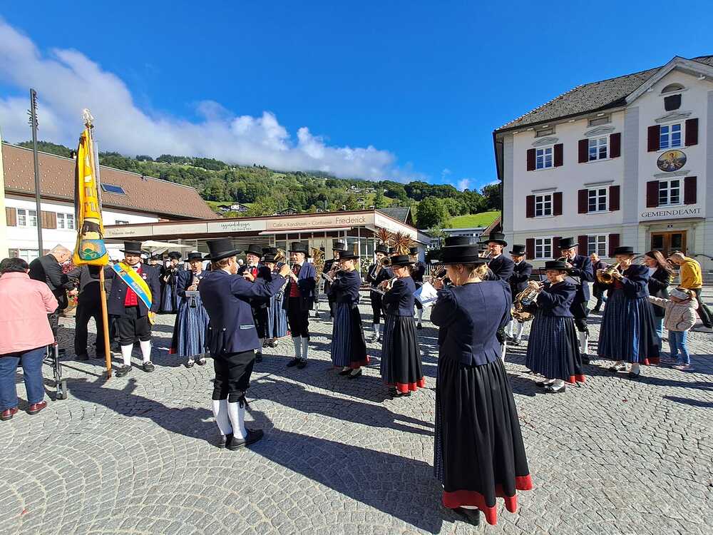 Bei der anschließenden Agape der Schrunser Bäuerinnen, welche von der Harmoniemusik Schruns musikalisch untermalt wurde, fanden die Festlichkeiten bei Wein, Traubensaft, selbstgemachten Gebäck, herrlichem Sonnenschein und einem gemütlichen Schwätzchen unter lieben Menschen ihren Ausklang.