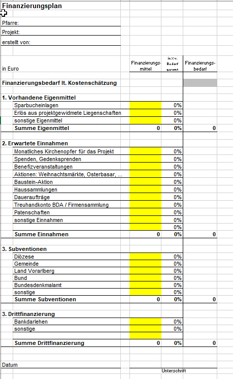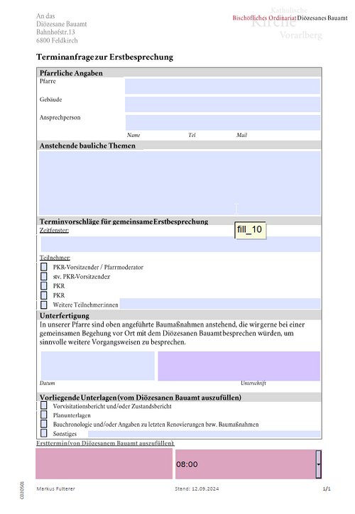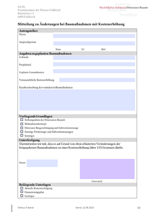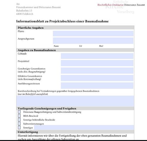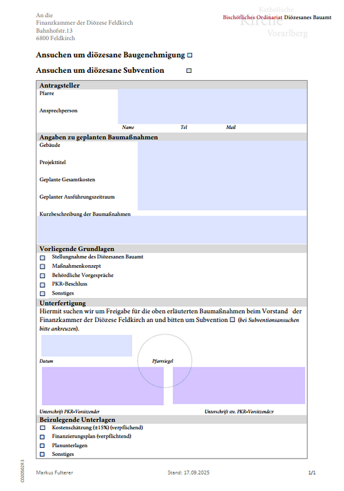 Vorlage zu Ansuchen um diözesane Baugenehmigung und Subvention